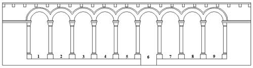 - Del arco 8 probablemente no queden sino las arquivoltas centrales, pues, como trataré de justificar luego, sus columnas han podido dejar de existir.