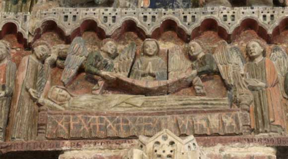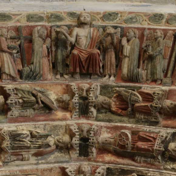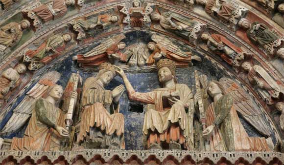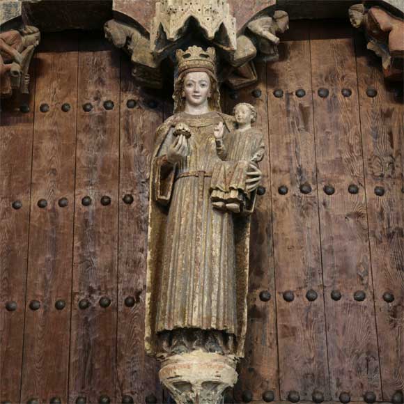 Excede del propósito de esta web, dedicada fundamentalmente al arte románico, entrar en un análisis pormenorizado de la iconografía de esta gótica portada, pero no por ello quedan sin ofrecer abajo algunas bellas imágenes.