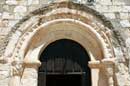 Es de arco de medio punto compuesto por tres arquivoltas, de las que la interior es lisa de sección rectangular orlada con una sucesión de palmetas de tallo ondulante, la intermedia está formada por un baquetón y una mediacaña de la que resaltan una serie de bolas y puntas de diamante, y la más externa es lisa de sección rectangular y sin ningún ornato. Envuelve el conjunto una chambrana de tacos jaqueses. |
