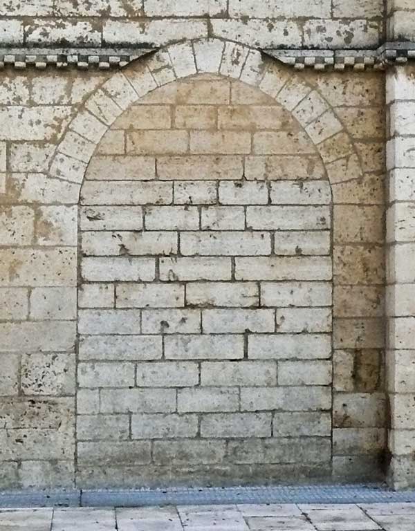 Sobre el aparejo de la sillería en general: «... las juntas discontinuas de las piedras, a poco más o menos encontradas, salvo algunos trozos que la continuidad de éstas ha dado origen a grietas de consideración».
