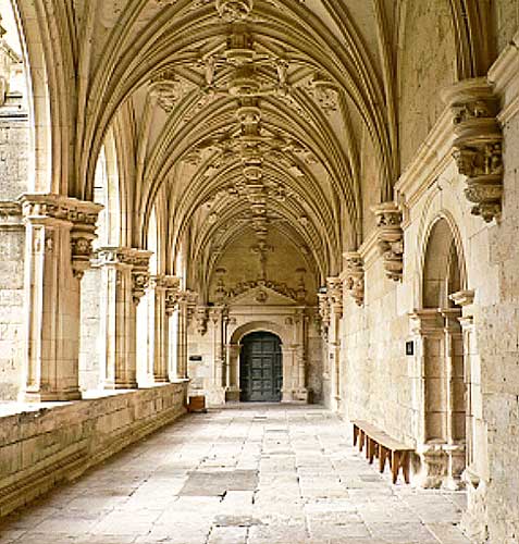 Si bien media algo más de un siglo entre estas dos fotografías de una de las pandas del claustro escasamente se aprecia alguna diferencia entre ellas, lo que quiere decir que esta parte del monasterio no ha sufrido en este tiempo deterioro o transformación alguna. |