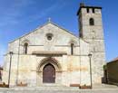 Iglesia de tres naves con sus correspondientes ábsides y transepto que aún conserba en buena medida su primitiva fábrica románica con algunas alteraciones. Aunque posee fachada al oeste con una sencilla portada, la principal es la orientada al mediodía, que es la que se muestra en las imágenes adjuntas. Por razones de estabilidad estructural se añadieron unos potentes contrafuertes de tipo arbotante que han servido además para formar una galería porticada a lo largo de toda la fachada.