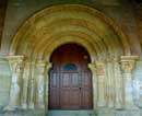 En el muro sur de la nave se dispone un arimez en el que se aloja la abocinada portada. La forman cinco arcos, de los que el interior apoya sobre las jambas de la puerta, el segundo y quinto sobre gruesas columnas acodilladas, y los dos restantes sobre soportes de aristas baquetonadas que simulan esbeltos fustes. Descansa todo sobre un banco corrido. |