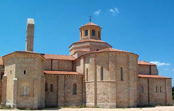 Sobresale en segundo plano el cimborrio que se alza sobre el crucero y la espadaña que prolonga en altura el testero sur del transepto. Ésta, aunque rehecha un par de siglos después, data del siglo XIII. |