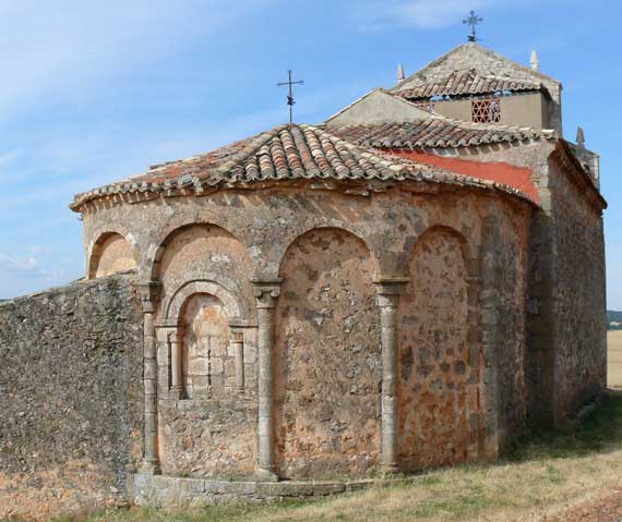 De trazado en hemiciclo, muestra al exterior cinco arcos de medio punto que decoran el tambor del ábside en toda su extensión, tratamiento inusual en el románico soriano, como no sea el caso parangonable de Rioseco de Soria, pero que sí encuentra precedentes en otras construcciones burgalesas y en Santa María la Nueva de Zamora. Forma una arquería ciega de paños lisos con excepción del arco central que alberga la única ventana existente. Es todo ello de mampostería, empleándose sillares rudamente tallados en los arcos y, por supuesto, en las columnas y en el zócalo sobre el que apoyan. Este ábside, por su originalidad, es el elemento más valioso del conjunto templario.