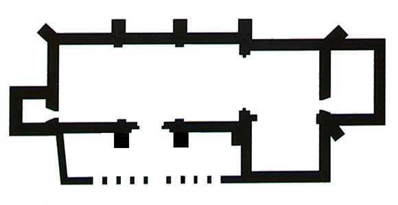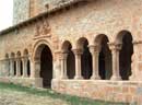 Como es habitual, consta la galería de un número impar de arcos, nueve en este caso, en disposición simétrica con respecto al central, de mayor luz, que proporciona el acceso al espacio porticado. Son arcos de medio punto muy simples, carentes de cualquier decoración, salvo la chambrana del arco mayor, y aun ésta lisa y desnuda. También la imposta que discurre por el paramento exterior está formada por una moldura lisa del mismo perfil que los ábacos y cimacios de los capiteles a los que da continuidad.