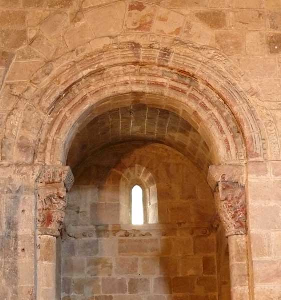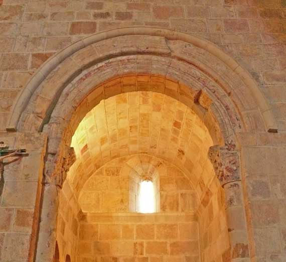 Ambos se cubren con bóveda de cañón de medio punto. También de medio punto son los arcos triunfales que enmarcan la embocadura de estos ábsides.