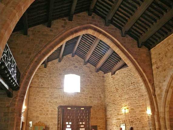 Los mencionados arcos diafragma, muy apuntados, están doblados y presentan sus aristas biseladas. Montan sobre columnas entregadas de fuste grueso y corto. Ni los capiteles ni las basas ostentan decoración alguna. Habida cuenta de la anchura de la nave única, la luz de estos arcos es de gran magnitud.