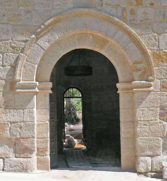 La portada principal que abre al sur es de arco de medio punto doblado y liso con chambrana moldurada a base de listel y nacela. Descarga directamente sobre las jambas con interposición de una imposta de listel, mediacaña y bocel. |