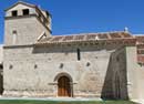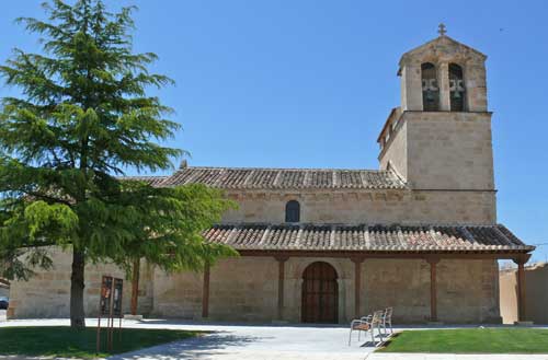 Se trata de una iglesia de una sola nave y cabecera recta algo más estrecha que la nave. A los pies se eleva una torre de planta rectangular. Posee dos portadas enfrentadas, una en el muro septentrional y la otra en el meridional. La fachada principal, la orientada al norte, está precedida por un pórtico de hechura reciente que pretende remedar al primitivo que, a tenor de los canzorros que se conservan, se prolongaba por casi todo el perímetro del templo. Anejo al ábside y con acceso desde éste existe un espacio destinado a sacristía que cuenta con una portada inutilizada y casi cegada que debía ser la que daba acceso al antiguo claustro desaparecido. |