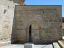 En el muro occidental de la actual sacristía aún se conserva una tercera portada que en su momento daba acceso al desaparecido claustro. Se encuentra cegada en su mayor parte y fuera de uso. Sigue en su diseño el empleado en las otras dos portadas: arco de medio punto doblado, imposta lisa que en este caso se prolonga por todo el muro, y jambas escalonadas. |